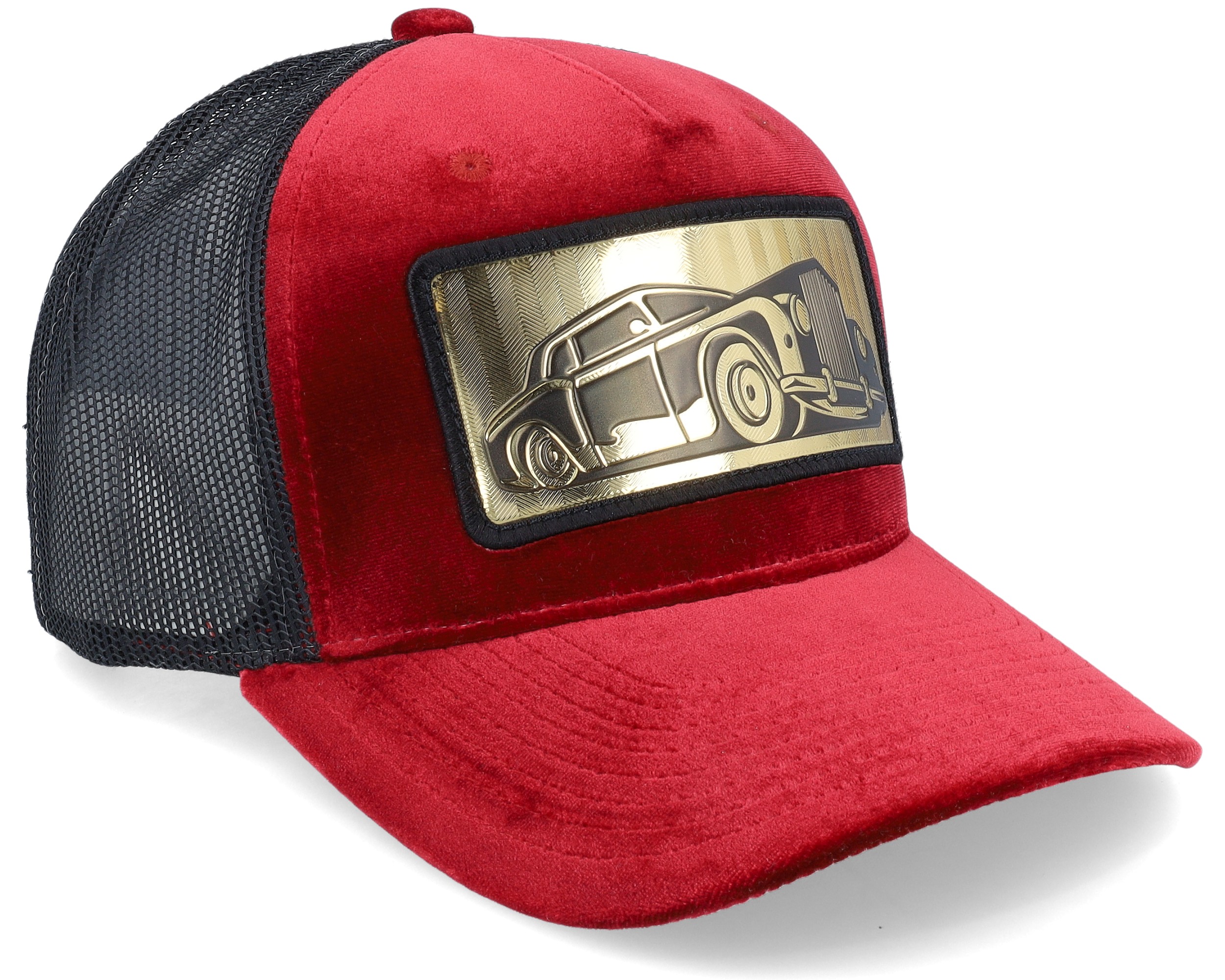 Luxury Car Gold Patch Velvet Red/Black A-frame Trucker
