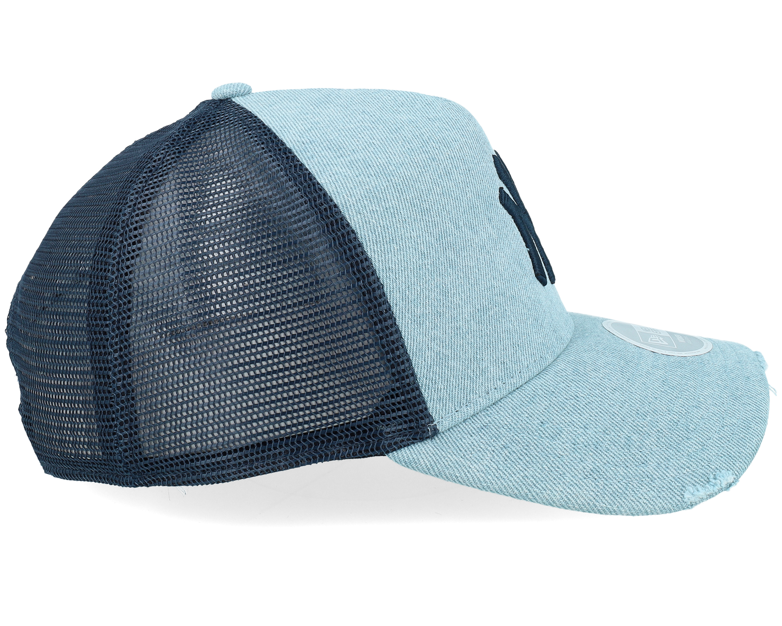 New York Yankees Womens Denim Pale Blue/Navy A-frame Trucker